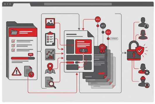 Reports are generated as governed information artefacts, enabling version control, structured evidence linkage and controlled stakeholder access.