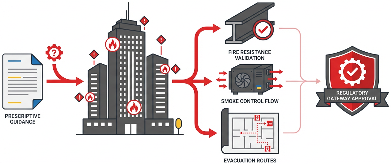 Complex buildings often require structured engineering judgement beyond standard prescriptive compliance routes.