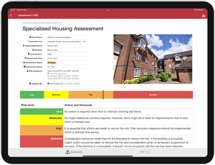 Assessments identify operational risks affecting employees, residents, contractors and visitors, providing structured risk scoring, prioritised actions and ongoing governance through the Compliance Operating System.